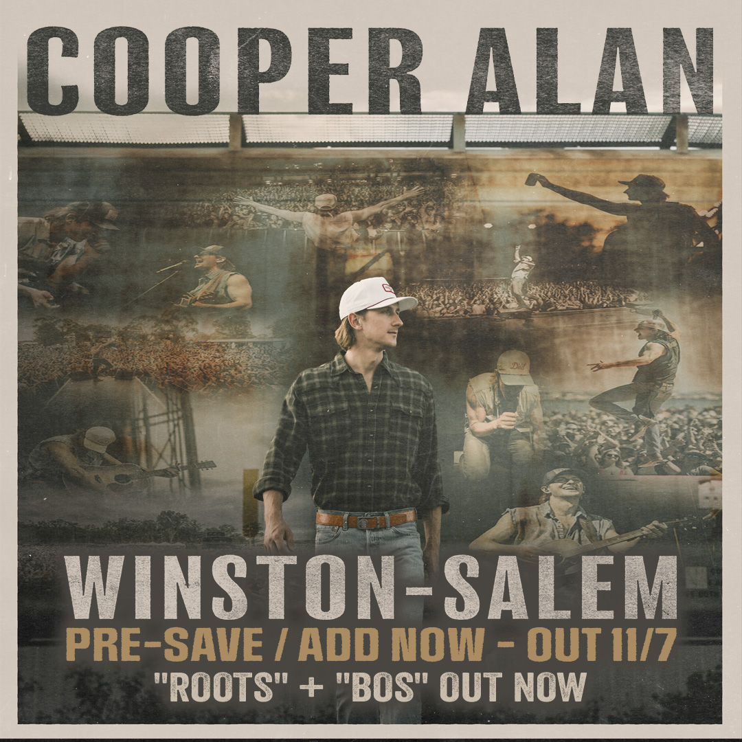 “There’s some planted down in the dirt of every hometown,” Cooper Alan sings in the first moments of “Roots,” the opening track from his long-awaited debut album Winston-Salem. “There’s the tree you can see, then there’s roots.” Describing it as a “good old driving American country-rock song,” Alan intended “Roots” as a tribute to the daily unsung heroes he saw holding it all together around him in our country — firefighters, police, teachers, truck drivers, farmers, and military. But it doubles as an overture for the album altogether. From here, Alan sings about who raised you, strangers you meet along the way, the trials you face, the bars you frequent. He sings about all the things that make us who we are to introduce a debut that captures everything about who he is as a man and a musician.